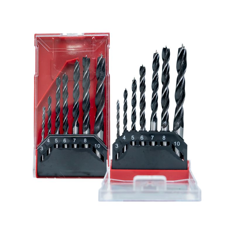 Setul de 7 burghie, cu diametre variate între 3 și 10 mm, asigură versatilitate în efectuarea găurilor în diferite materiale și pentru diverse aplicații, de la găuriri fine și precise până la cele robuste și de mare diametru.