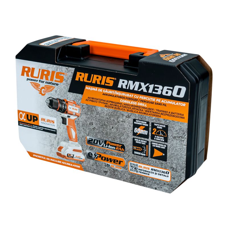 Masina de gaurit/insurubat cu percutie pe acumulator RURIS RMX 1360 power alfa up {contine acumulator+incarcator}