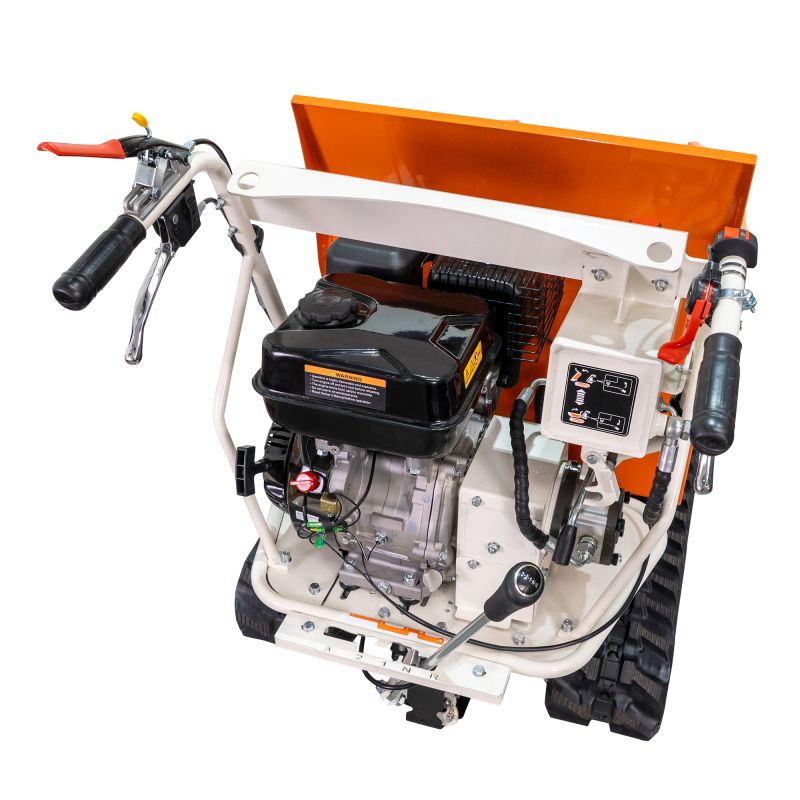 Utilajul este echipat cu un sistem de basculare hidraulică, un avantaj important care simplifică considerabil descărcarea materialelor grele sau voluminoase. Acest mecanism asistă ridicarea cuvei, reducând efortul fizic necesar și permițând o golire controlată, rapidă și sigură, chiar și în condiții de încărcătură maximă.